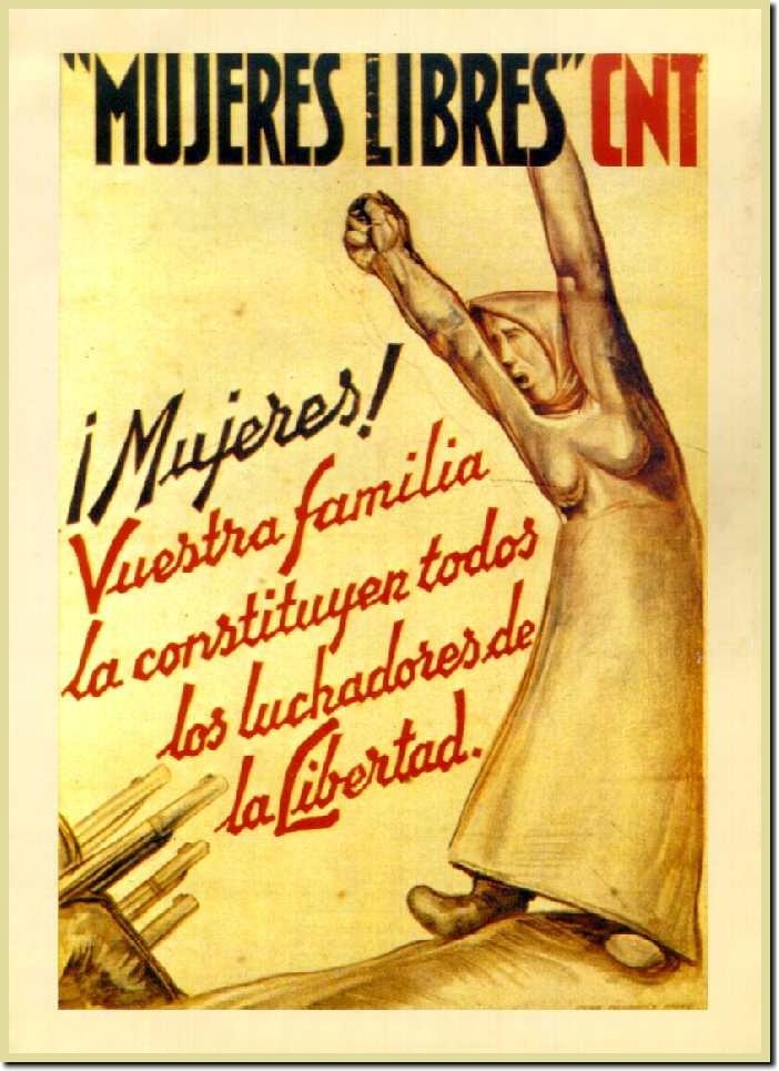 Entre le 20 et le 22 août 1937, naissait à Valence la Federación Nacional de Mujeres Libres. Dans l’article premier des statuts publiés peu après, elle se donne pour objectifs de « créer une force féminine consciente et responsable qui agisse en tant qu’avant-garde de progrès » ; et d’établir à cet effet des écoles, des lycées, des cycles de conférences, des cours spéciaux, etc., visant à former la femme et à l’émanciper du triple esclavage auquel elle a été – et reste – soumise : esclavage de l’ignorance, esclavage en tant que femme et esclavage en tant que productrice.